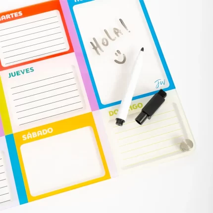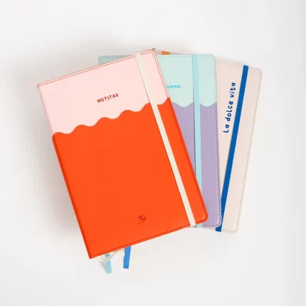 Bullet journal con 80 hojas de papel de 100 g, ideal para escribir o dibujar sin que traspase. Cuenta con tapa dura revestida en PU para mayor durabilidad y un cierre elástico que mantiene todo en su lugar.
