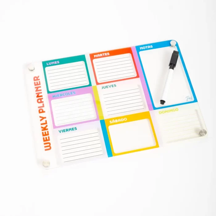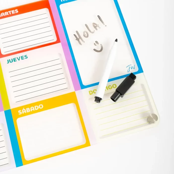 Pizarra magnética de 29.7 x 21 cm, ideal para la heladera. Incluye marcador para anotar recordatorios o mensajes.
